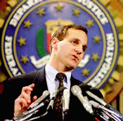 | Above: FBI director Louis Freeh announces his plan to exhaustively screen all child-care workers. Child-havers (right) will continue to go unscreened. |