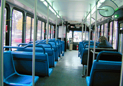 | Above: Morning rush hour on one of Los Angeles' economical, environmentally friendly buses. |